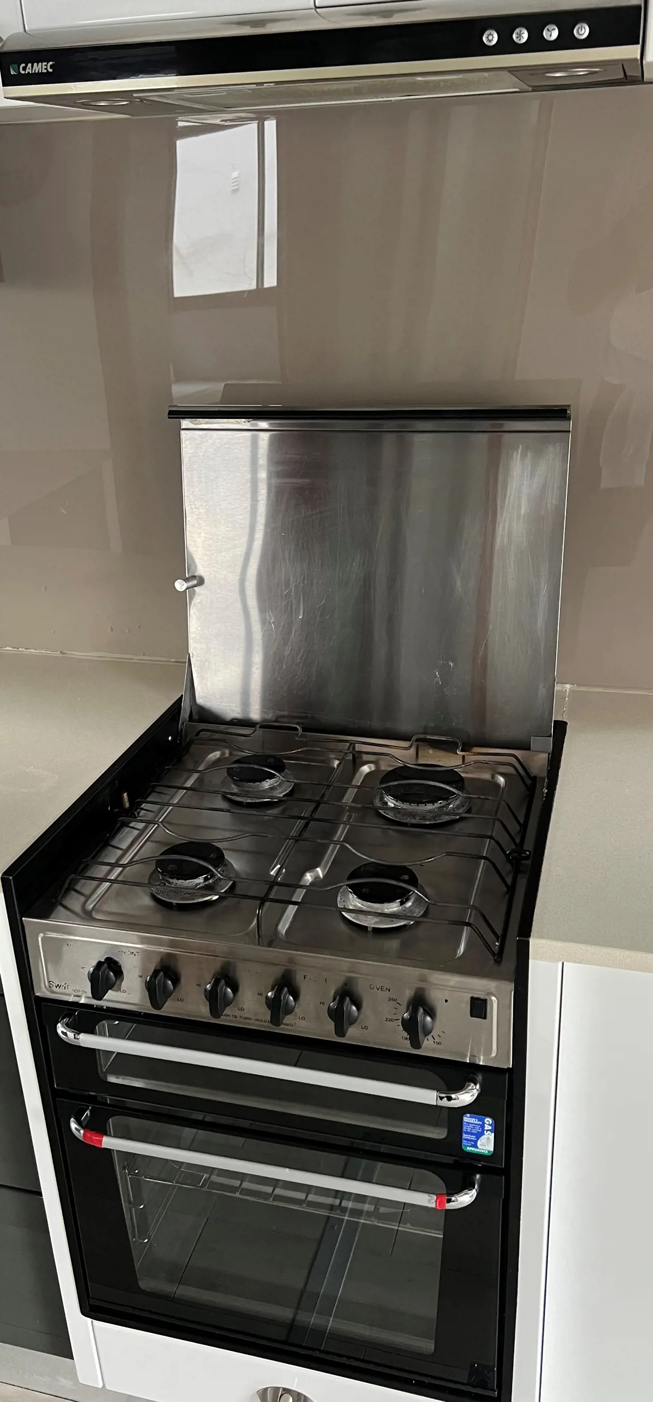 - Granite benchtop kitchen with gas cooktop oven