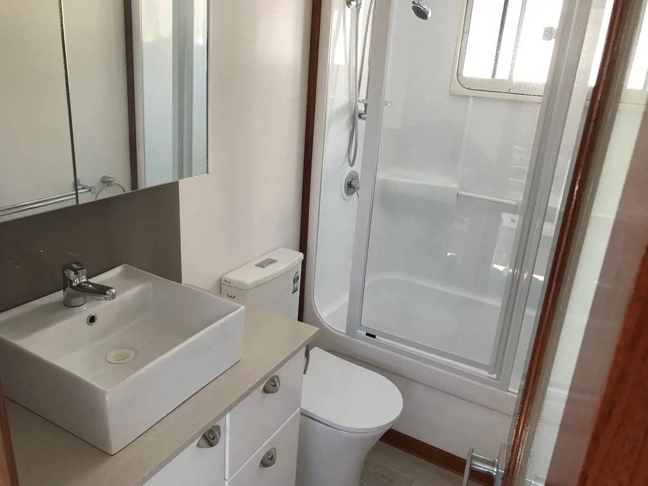 - Modern bathroom with holding tank
