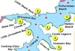 You are not permitted to use moorings west and east of Cottage Point as they are all private moorings.