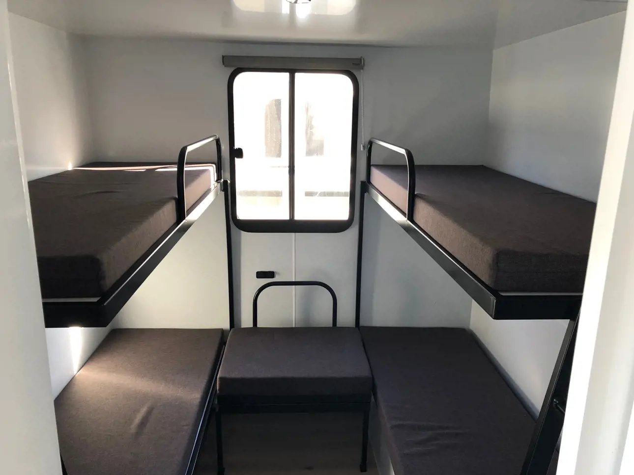 - 2 bedrooms each with 4 single bunks - the 2 lower bunks can be transformed to a double bed.